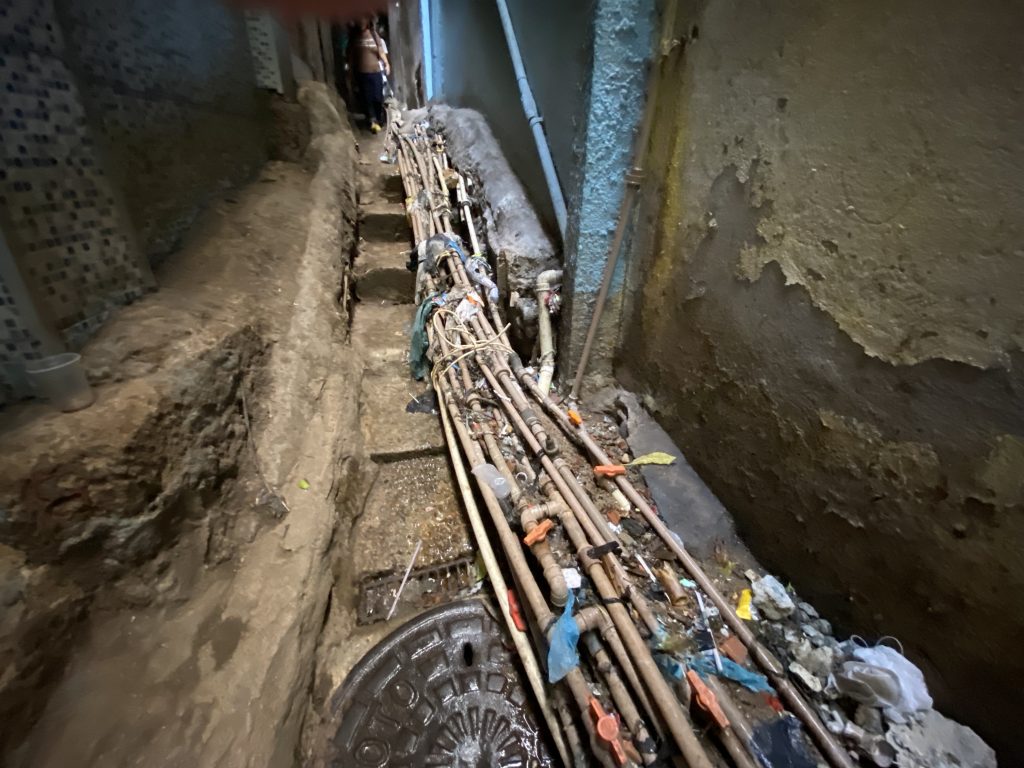 “A instalação [dos pontos de manobra] é feita por canos, sendo um cano base e tem outros que fazem a emenda com a manobra. Às vezes tem uns [canos e pontos] que nem vemos, mas eles ajudam a chegar a água em casa. Aqui em baixo [do morro], as manobras são complexas, mas são eficientes. A água aqui chega mais forte por ter mais pontos. Já na parte alta, por ser mais íngreme, é difícil a distribuição, e o pessoal puxa canos, faz emenda… É muito complexo!”, ressalta Raimundo.