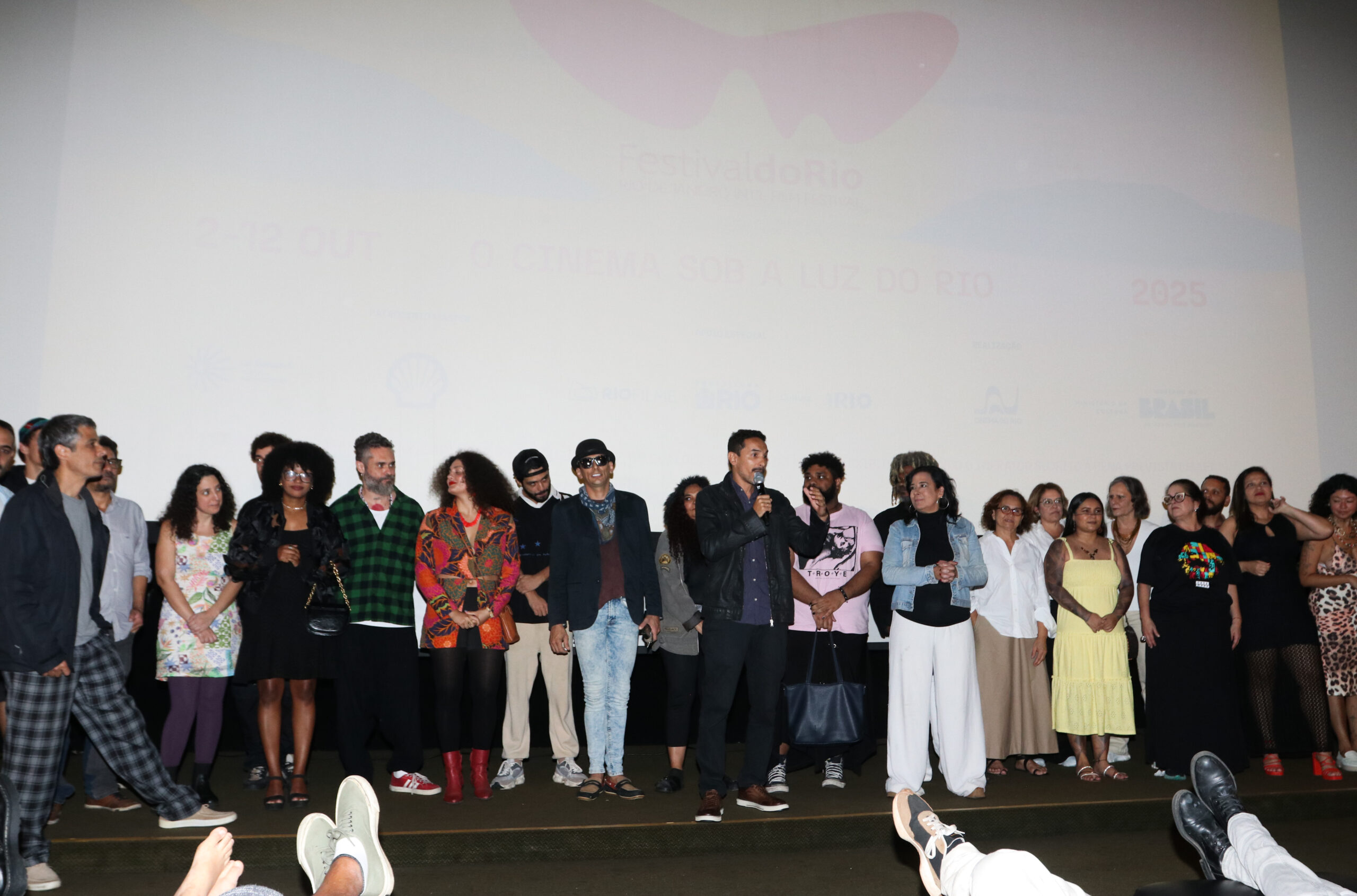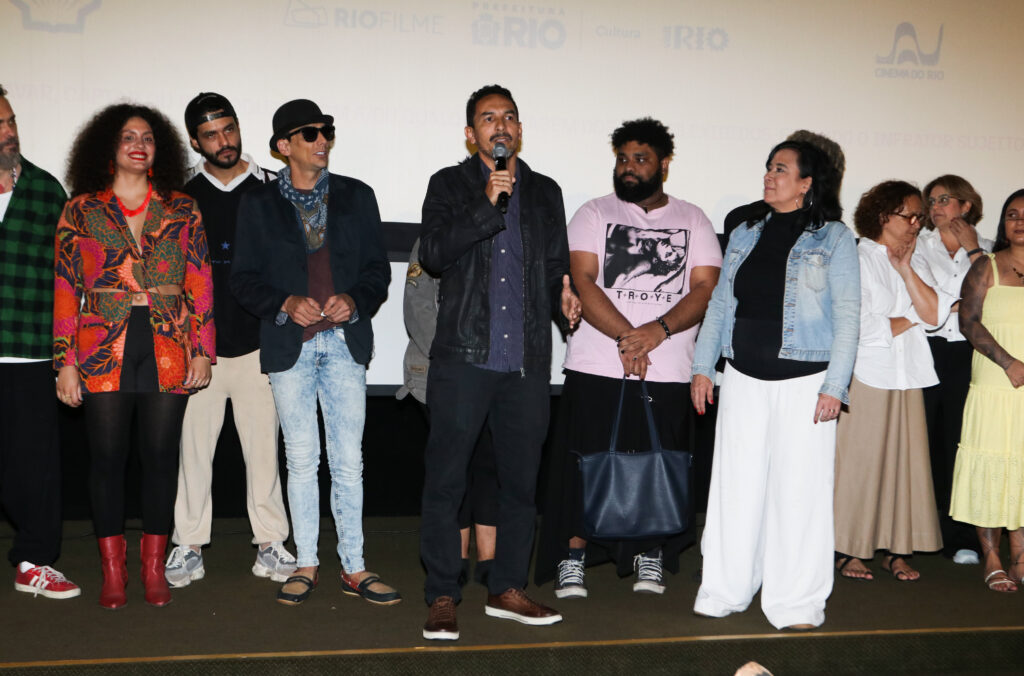 Marcos Braz discursa no Festival do Rio 2025 sobre a produção do filme Crônicas Marginais, da Academia de Cinema da Rocinha. Foto Claudio Andrade