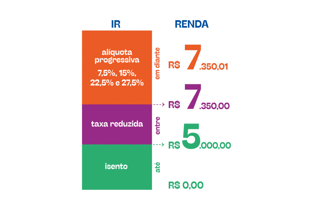 Resumindo: quem ganha acima desse valor, mantém-se a tabela progressiva vigente, com o imposto cobrado a partir de taxas que aumentam conforme a renda, em 7,5%, 15%, 22,5% e 27,5%.